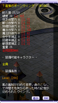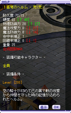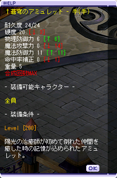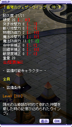 町で時々見かけていた 謎のかわいらしいハート型の武器 ぐぐって見たらVer4.93で実装された 低レベ向けクエストの報酬でした このクエストで貰える武器は 全てシャピの○○という名前になるらしい 私が持っているのはシャピのロッド 聖杖ですね 赤いハートとかツボすぎる! 魔杖は見た目が残念だったので却下 このシャピの武器シリーズ 28~52まであるみたいなんだけど どうやら武器の種類でグラは変わるけど 装備レベル条件では変わらない様子 しかし補正は店売りやドロップ品の方がいいから あまり実用性はないような・・・ とりあえずメインで42、サブテチで35を貰ってみたけど 補正が違うだけで、見た目も名前も同じだから28と52も同じかな? 移動量とかアイテム集めとか 一部2回やらないと先にやらないと進めなかったりと めんどくさい部分も結構あったり まあクエスト事態そんなものか Lv28用シャピの武器 慢性疲労ロンダ (Lv25以上)→アルビナの頼み (Lv27以上)→アルビナの頼み(2) (Lv29以上) http://talewiki.com/talewiki.php?Quest%2F2#vc0baa5b LV35用シャピの武器 盗まれたお茶袋 (Lv30以上)→中略→再び消えた物 (Lv37以上) http://talewiki.com/talewiki.php?Quest%2F2#c1fda6f3 Lv42用シャピの武器 [海の中へ]からの依頼 (Lv35以上)→中略→リカスの追憶箱を探して (Lv44以上) http://talewiki.com/talewiki.php?Quest%2F%A5%CA%A5%EB%A5%D3%A5%AF#udc68849 Lv52用シャピの武器 自警団のために!(Lv42以上)→丈夫な装備が必要! (Lv49以上)→洞窟調査依頼 (Lv54以上) http://talewiki.com/talewiki.php?Quest%2F%A5%AF%A5%E9%A5%C9#vfc0fb4f 町に居ても常に武器が見えてるのってテチだけだし 他のEP1キャラは走らないと見えないし EP2キャラなんて・・・ねぇ ネタで持つ為にクエやる人は大半はテチだろうな(’’; |