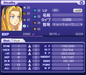 メイン・・・カンスト サブテチ・・・モナレベル 他のサブ・・・100未満 だいたい行き詰るレベル帯が決まってて 乗り越えられないとそこでストップしてしまう テチ以外はそんな感じでレベル上げが止まってるキャラ多いです サブは結構作ったけど ミラ、ルシ、ピン、ボリ、ジョシュ はまだやったことがないんです だから、ちょっとやってみようかなーと まあすぐ飽きそうだけど・・・ 上級28、42の細剣があったから 今の候補はピン子さん ルシとピンならやっぱりピンだよね? でも低レベのうちなら大差ないかな どうしようかなー てか、アナイスやりたいよアナイス でもイサックの実装もまだだし いつになることやら・・・ |
