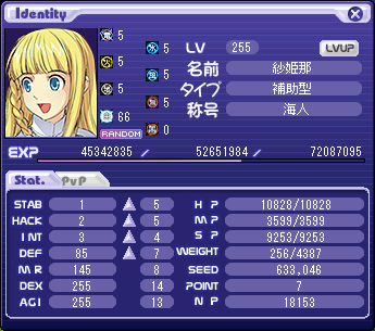 今日久しぶりに再振りっていう物をしたよ カンストする少し前にしたのが最後だから かれこれ2年半以上・・・? 久しぶりすぎてどうにしてたのかほとんど忘れてた 再振りする前のステのSS撮り忘れました たぶんこのステだったような・・・ 確か影55階のステだったと思うよ 記憶が微妙w 今回はシオカン用ステに再振り と言ってもまだ行けませんけども(´・ω・`) 白魔法の30%制限がなくなったし 現時点でIはいらないので 装備整ってクエ終わり次第いつでも行けるように その気になった時に再振りしておかないとね めんどくさがりだし・・・(;´∀`) そんな訳で再振り後 称号は目をつぶって欲しいっす デリセンヒルを一切やってなくて 今クエ進めてる所なので・・・ 再振り結果としては、そんなに悪くないと思う でも実は途中で大失敗しました ずっと前に貰ったロングソードのプレゼントボックスをまだ持っていて 何を思ったか、それを途中で使ってしまっ・・ 再振り終わってから使えば、もっと良いステになってたのにー(´;ω;`)ウッ… 後悔しても後の祭りなので、あれは最初からなかった事にしよう うんうん とひたすら自分に言い聞かせるしかなかったよね まあ、めんどくさい再振りはこれで終わったし 次はとりあえずデリクエ終わらせないとなー |